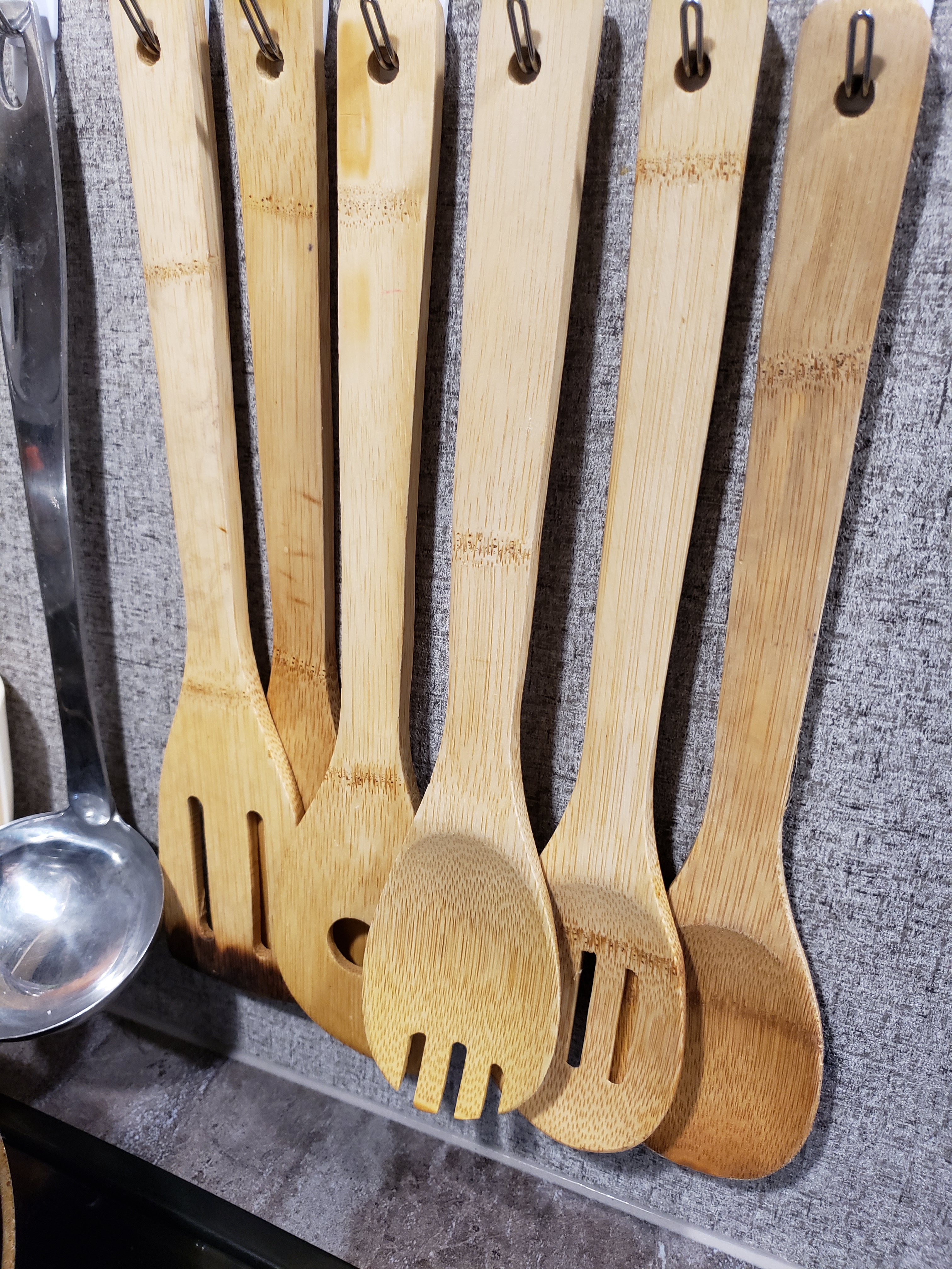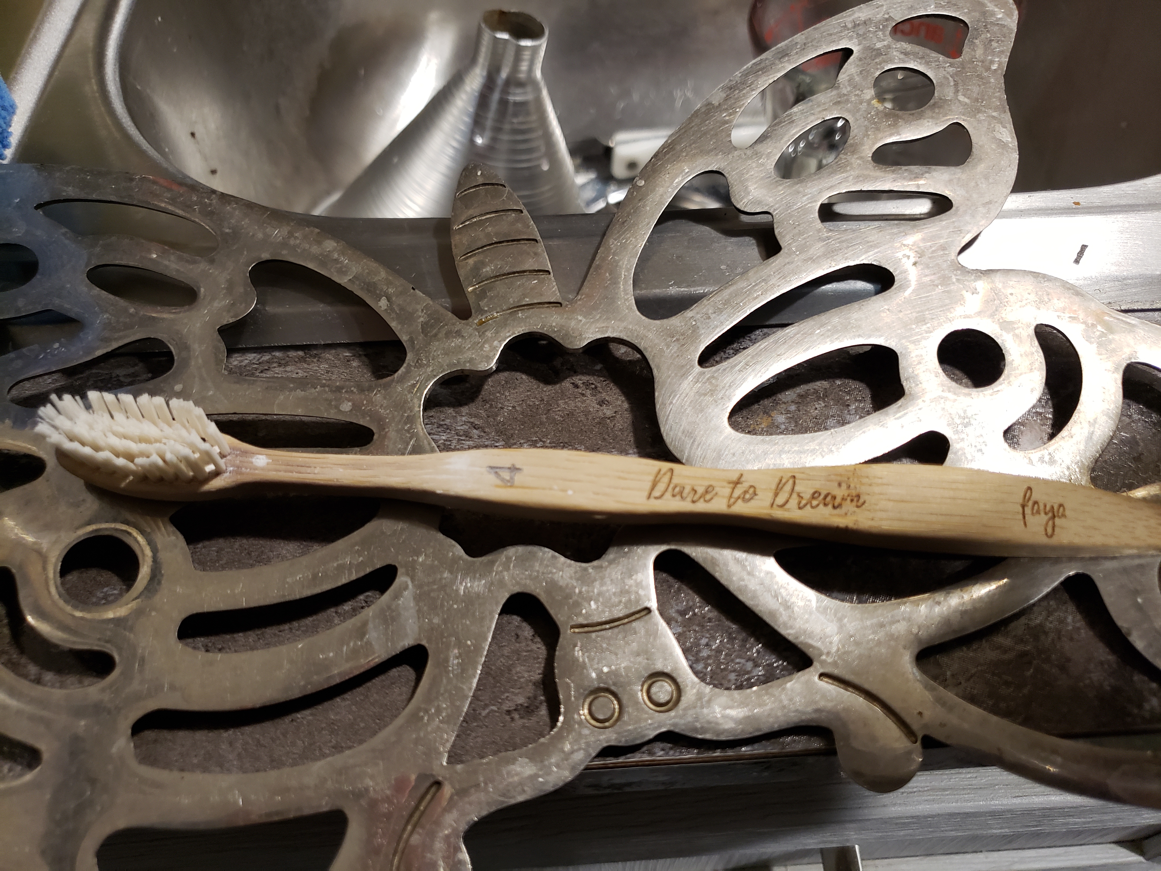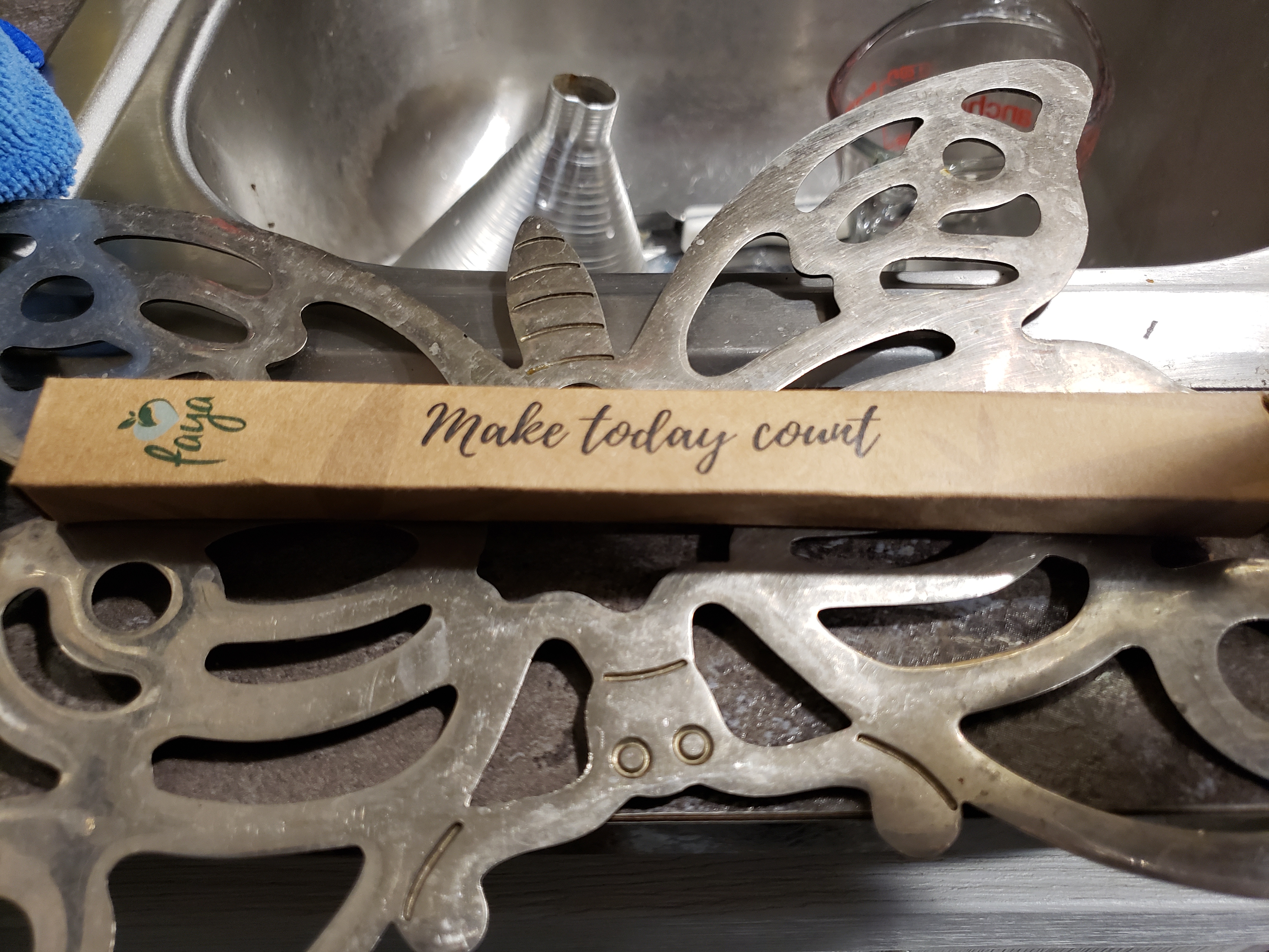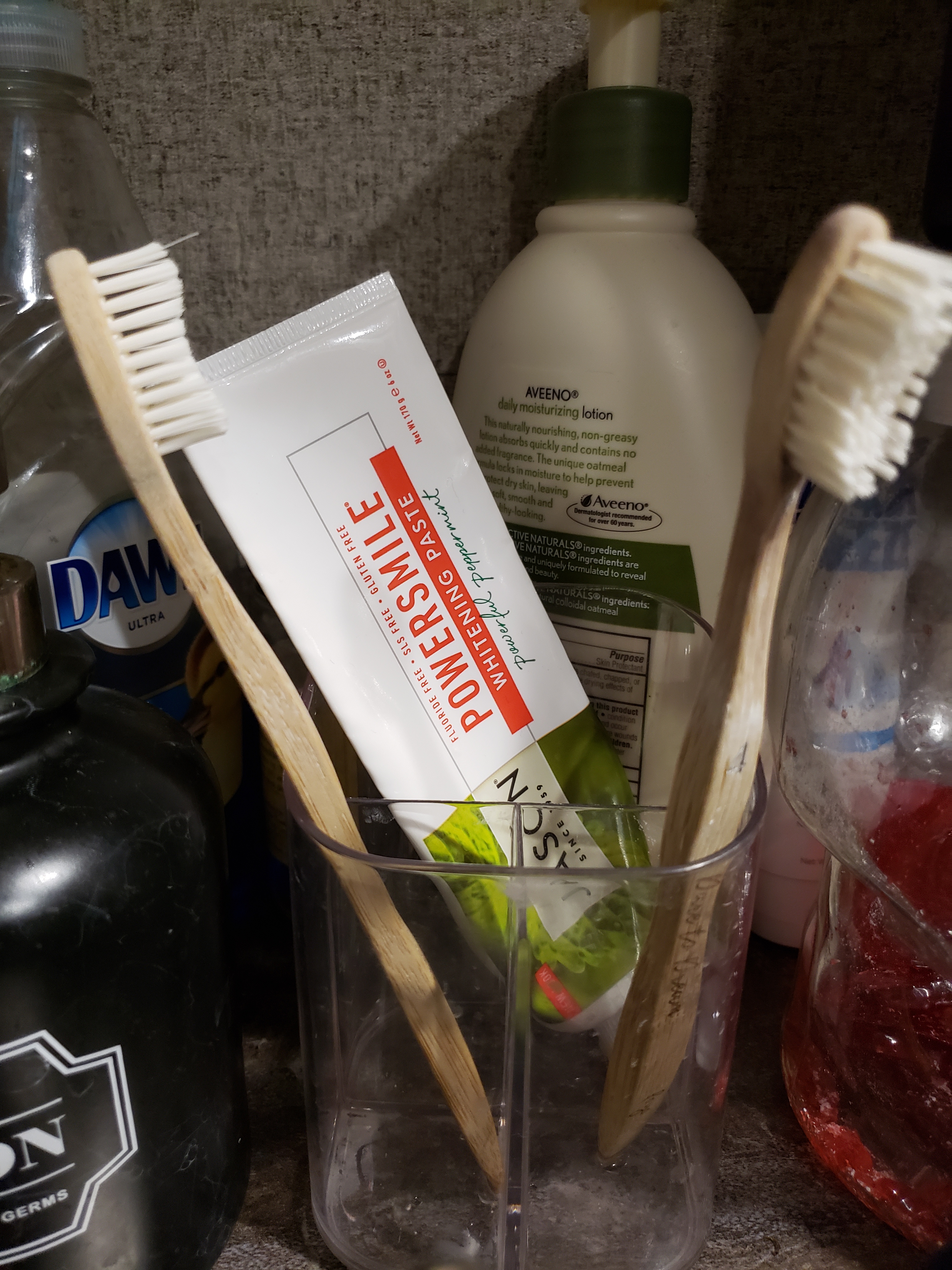 We also use bamboo cooking utensils and bamboo toothbrushes (with positive messages) rather than plastic ones. Bamboo and sustainability are like peanut butter and jelly. 🙂 Pandas would agree. 😛 Bamboo is grown without pesticides or fertilizers, requires no irrigation, rarely needs replanting, grows rapidly, respires more 33% more oxygen than equivalent stand of trees, hinders soil erosion, and has the lowest environmental impact of any other fiber, especially synthetic. ❤