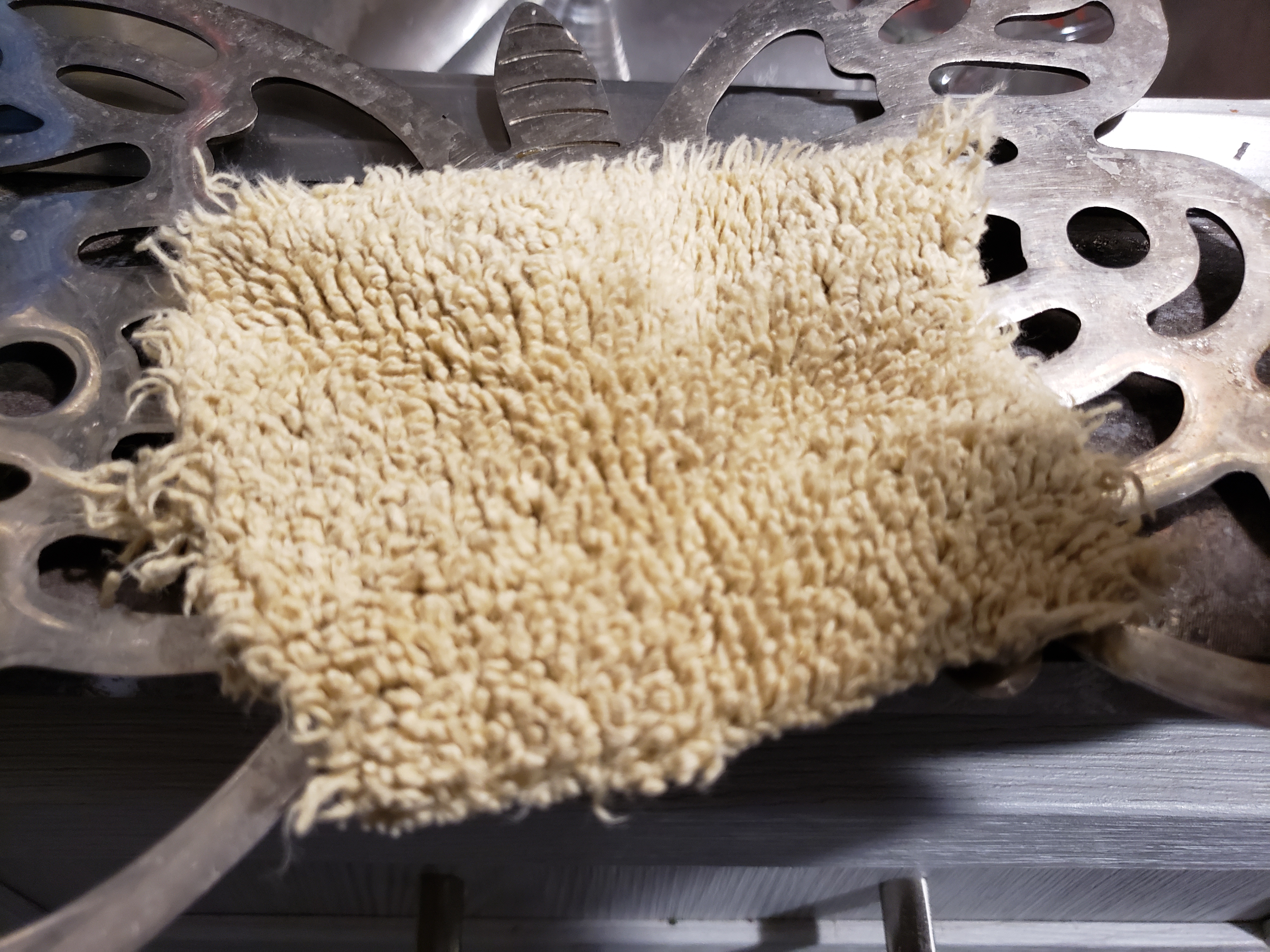 I cut up an old bathroom towel rug and repurposed the squares as wipes after I pee. I effectively have reduced my toilet paper consumption and waste, and we save money too. These squares are reusable. I simply rinse them out in the shower with me, then put them into the laundry. Clearly I’ve brought them to the camper. Considering the freezing problems we’ve had, imagine the build up of toilet paper in the sewer hose if I used it every time I peed. *gross face*